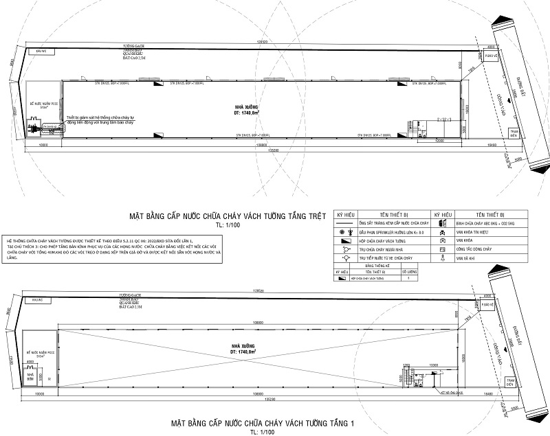 Mặt bằng và mặt cắt hệ thống báo cháy