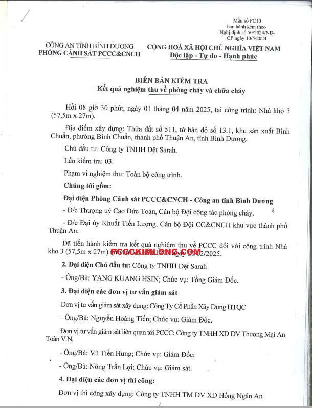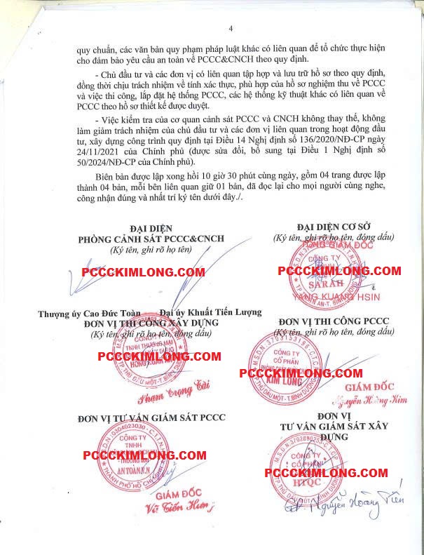 Thẩm duyệt & nghiệm thu: Cơ quan PCCC TP. Hồ Chí Minh trực tiếp kiểm tra và cấp giấy chứng nhận.